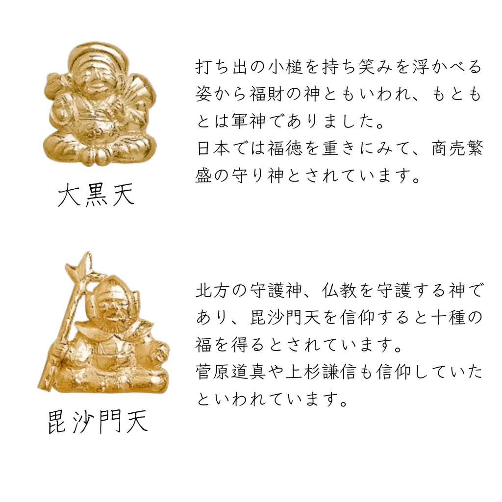 平安道齋による純金箔押しの豪華絢爛な兜飾りです。 道齋ならではの、華やかでありながら上品な金具装飾が際立ち、お子様への願いを細部にまで込めています。 七福神を意匠に取り入れ、「七難即滅、七福即生」のご加護を象徴。七つの災いを払い、七つの幸福を授ける力にあやかる、福徳を祈願した特別な兜です。