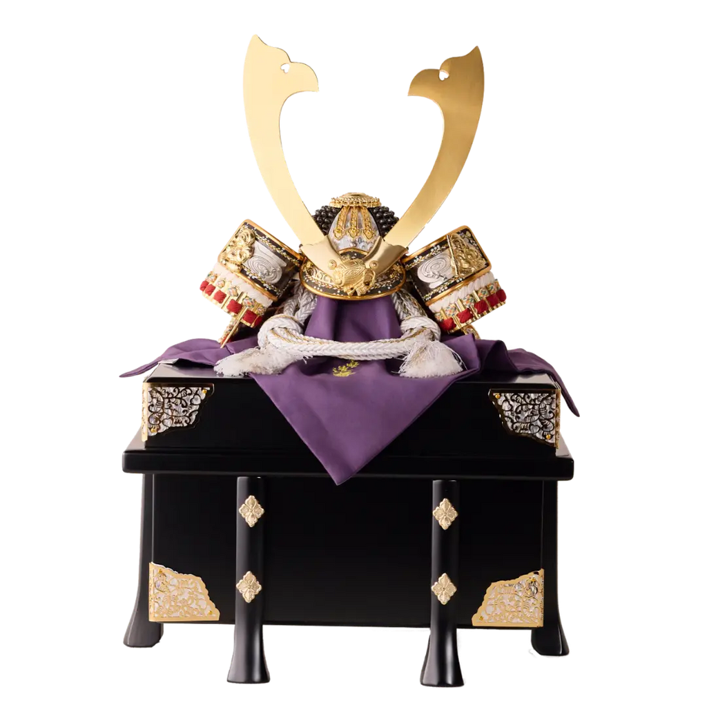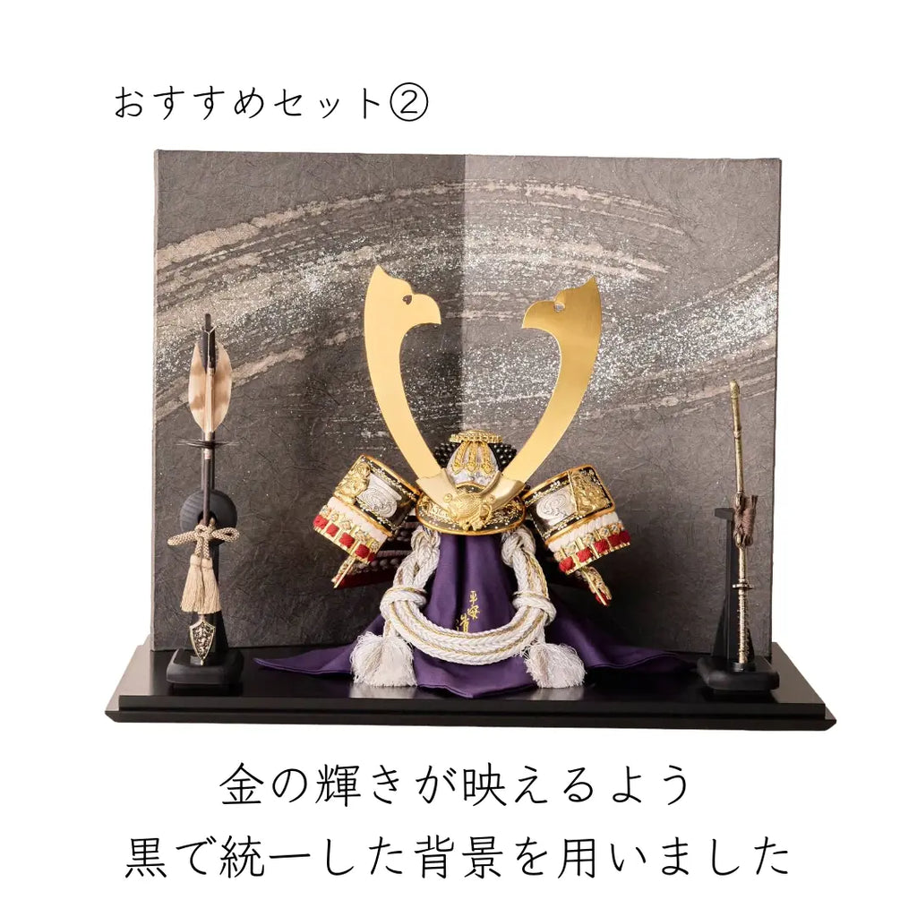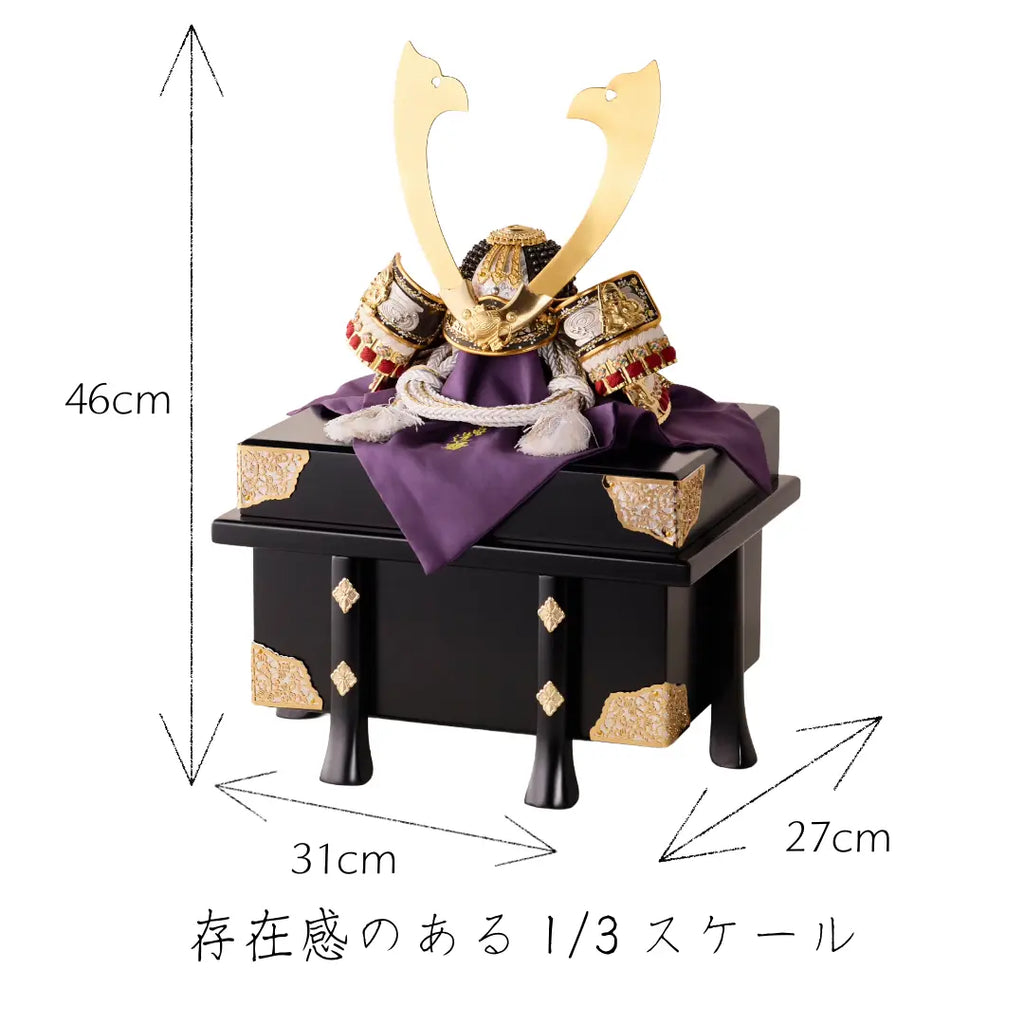 漆黒の艶消し塗装を施した、シックな印象の兜飾り