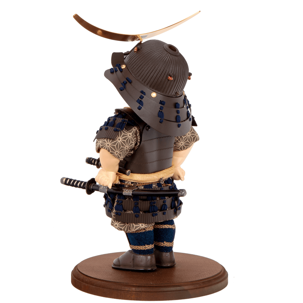柔らかに微笑みながらも誇らしげで強さも感じる表情に、渋い艶消しの鎧を着た、落ち着いた印象の人形です。