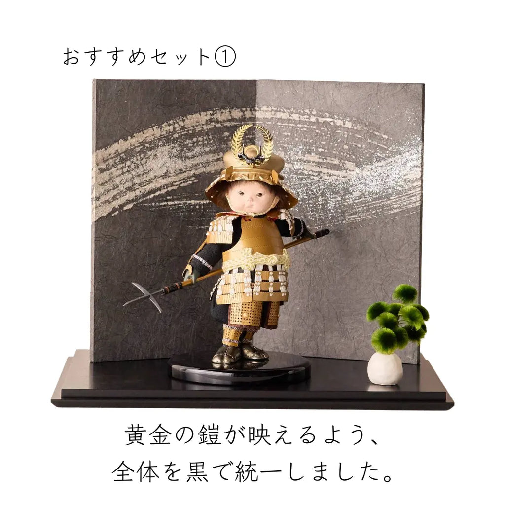 - おすすめセット①:40cm巾の台座に黒に染めた和紙の屏風を背景にした飾り