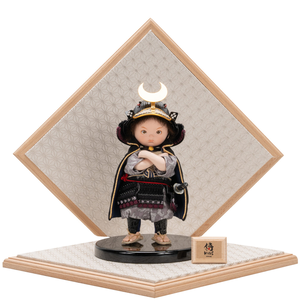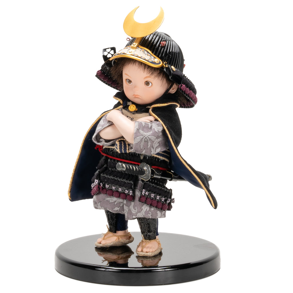 漆黒の艶消し塗装を施した、シックな印象の兜飾り
