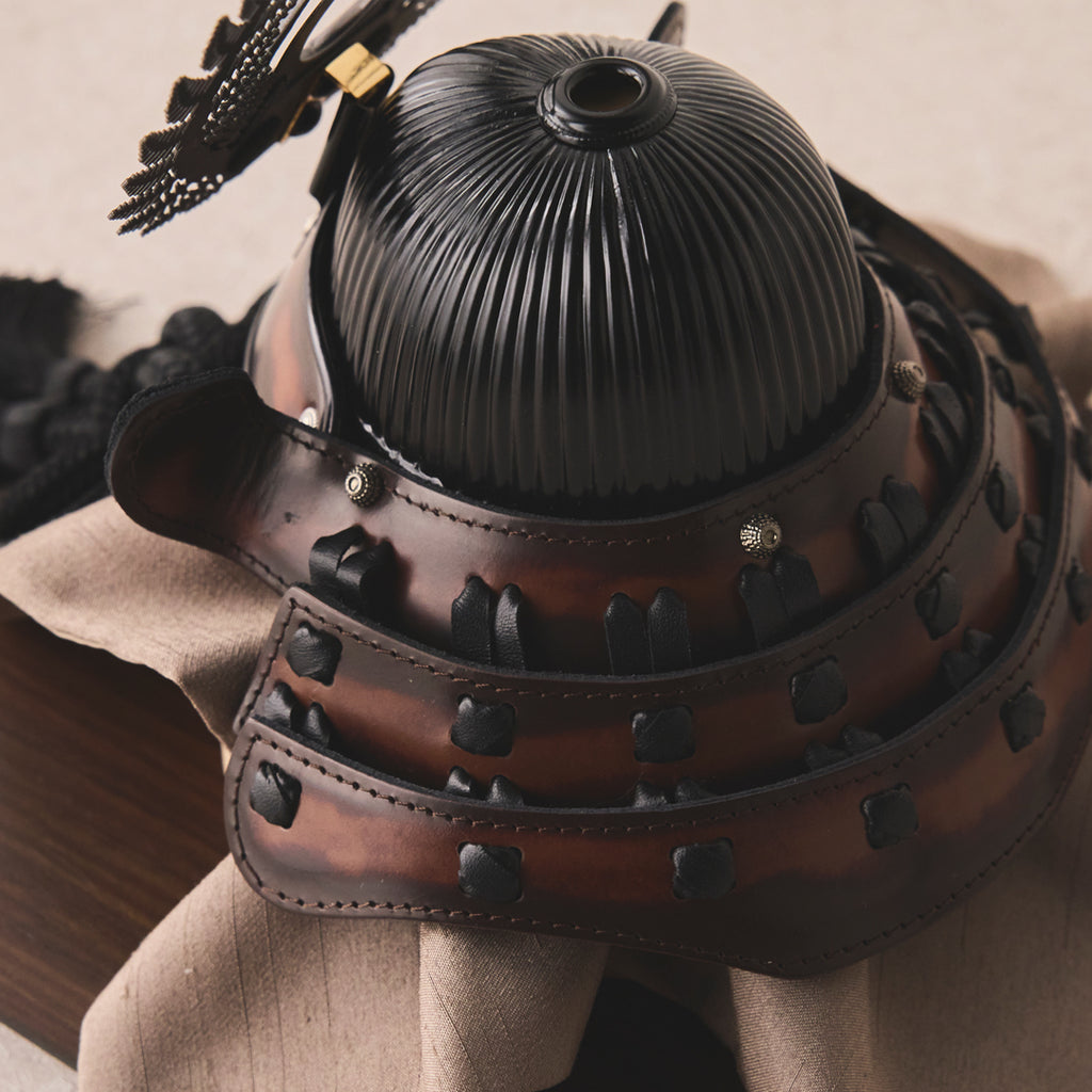 漆黒の艶消し塗装を施した、シックな印象の兜飾り