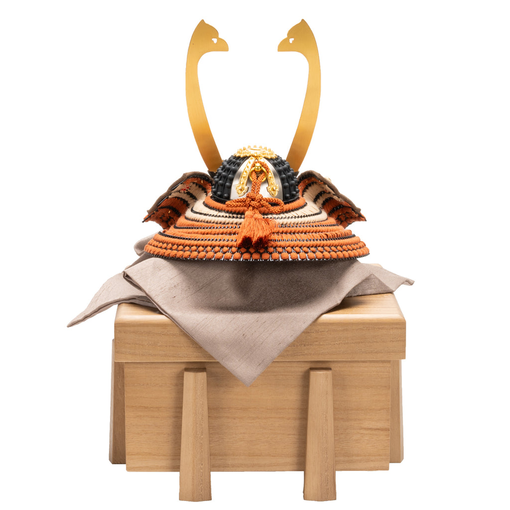 「暁 真朱(しんしゅ)」は、鈴甲子雄山が手がける暁シリーズの1/5スケール兜飾りです。 赤煉瓦を思わせる深みのある真朱の糸で威し、温かみと力強さを併せ持つ色調に仕上げました。 室町時代の笠じころを基にした造形美が際立ち、伝統の技と現代感覚が調和した上質な作品です。