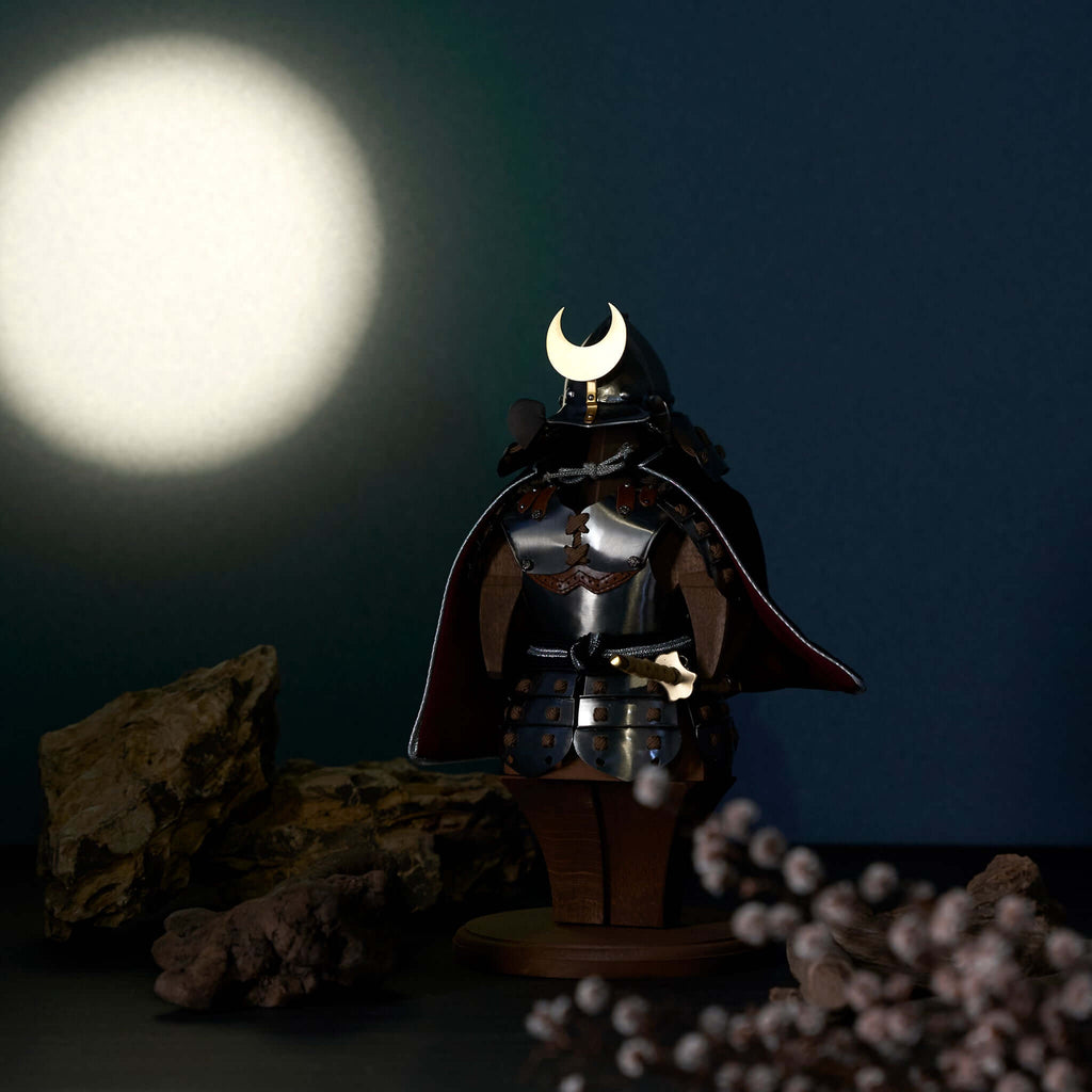 漆黒の艶消し塗装を施した、シックな印象の兜飾り