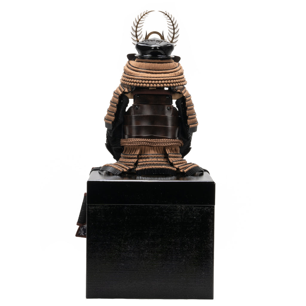漆黒の艶消し塗装を施した、シックな印象の兜飾り