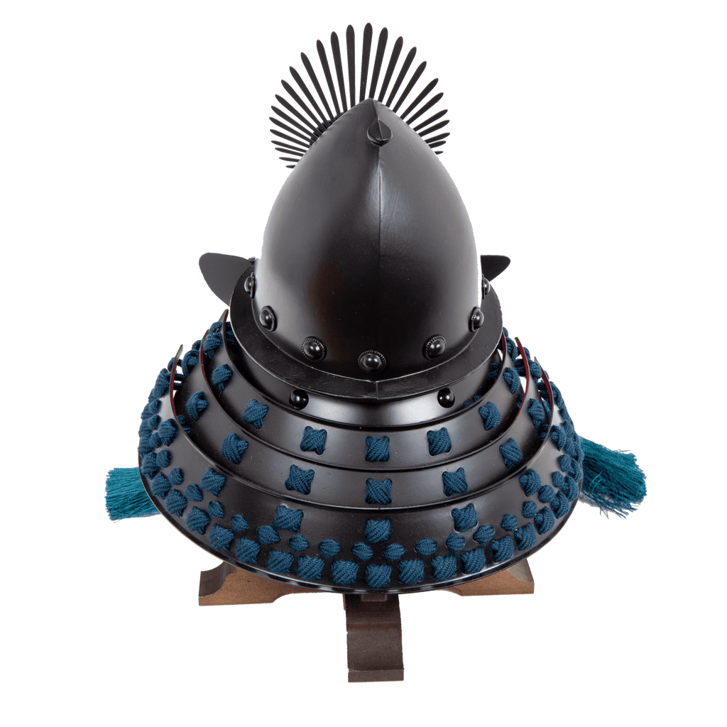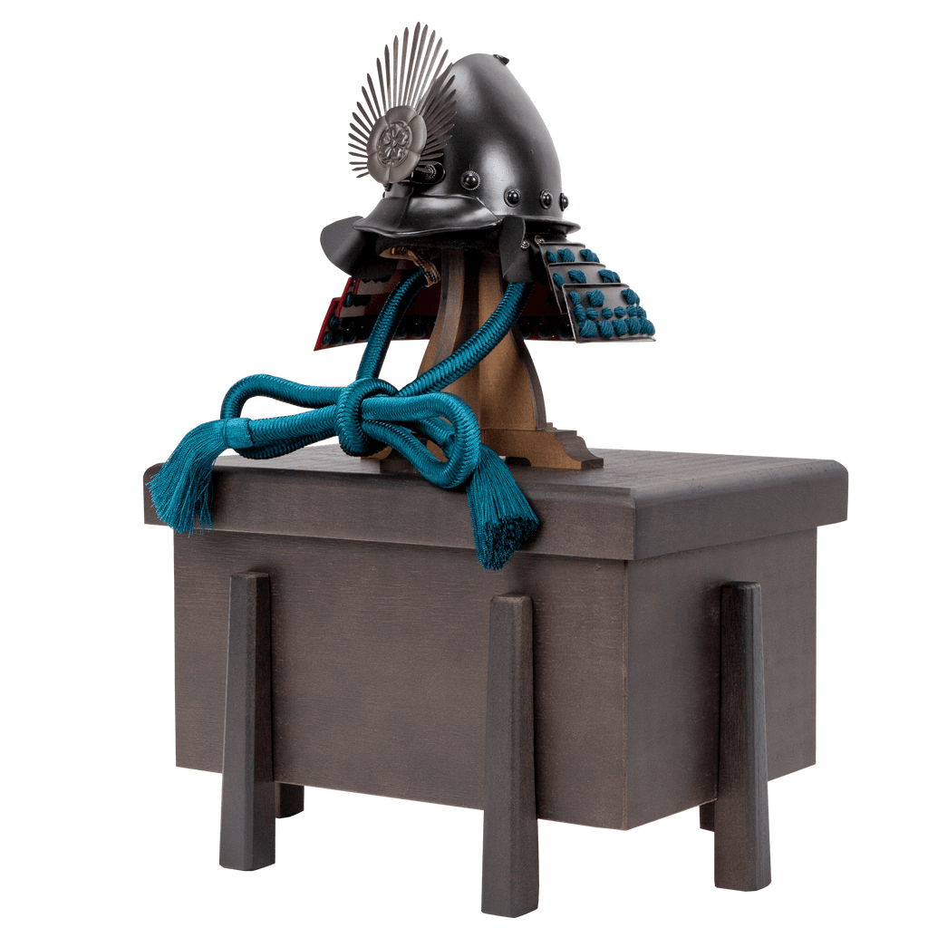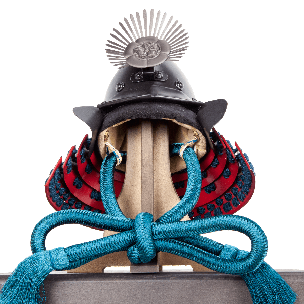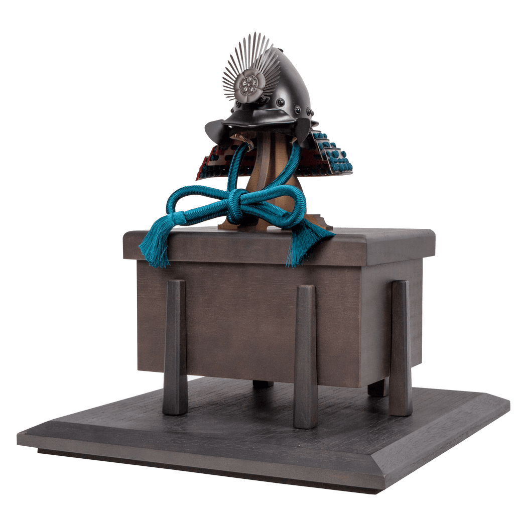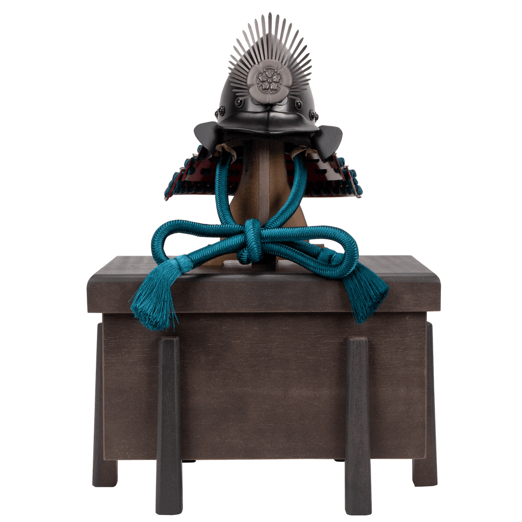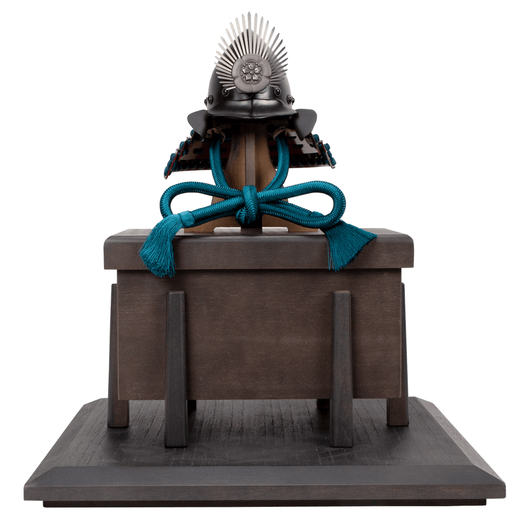 漆黒の艶消し塗装を施した、シックな印象の兜飾り