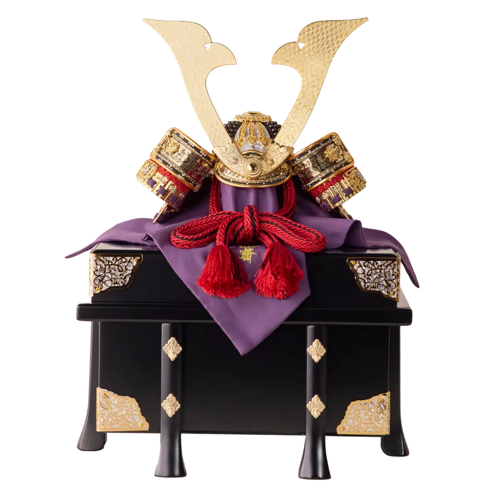 漆黒の艶消し塗装を施した、シックな印象の兜飾り