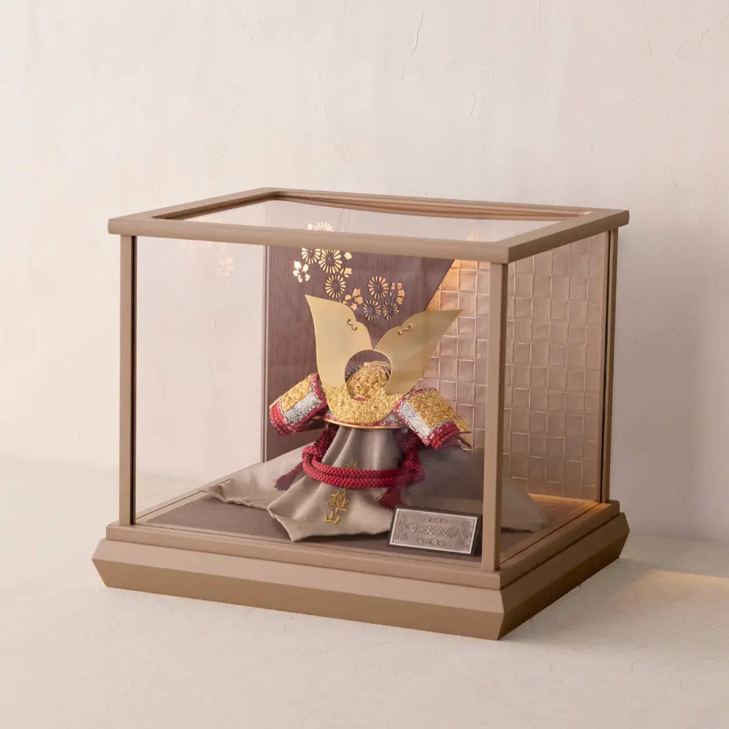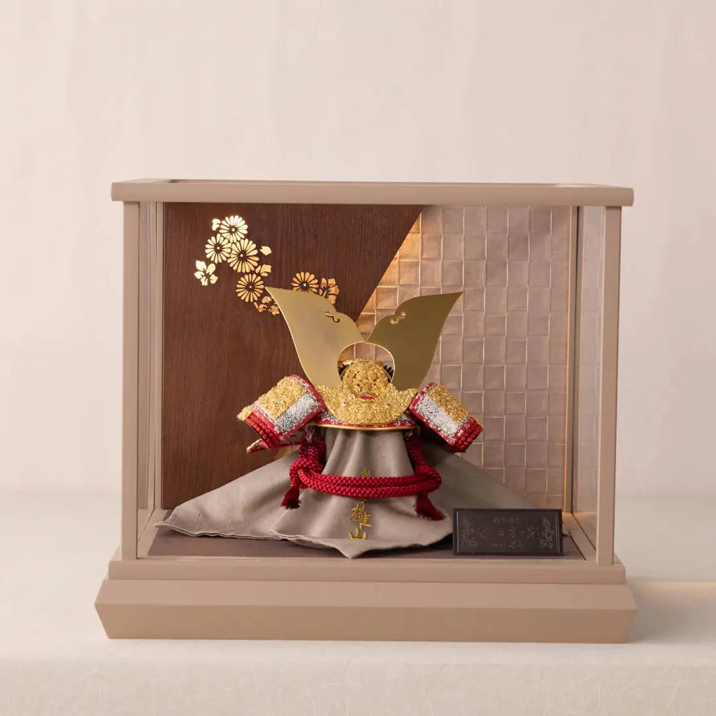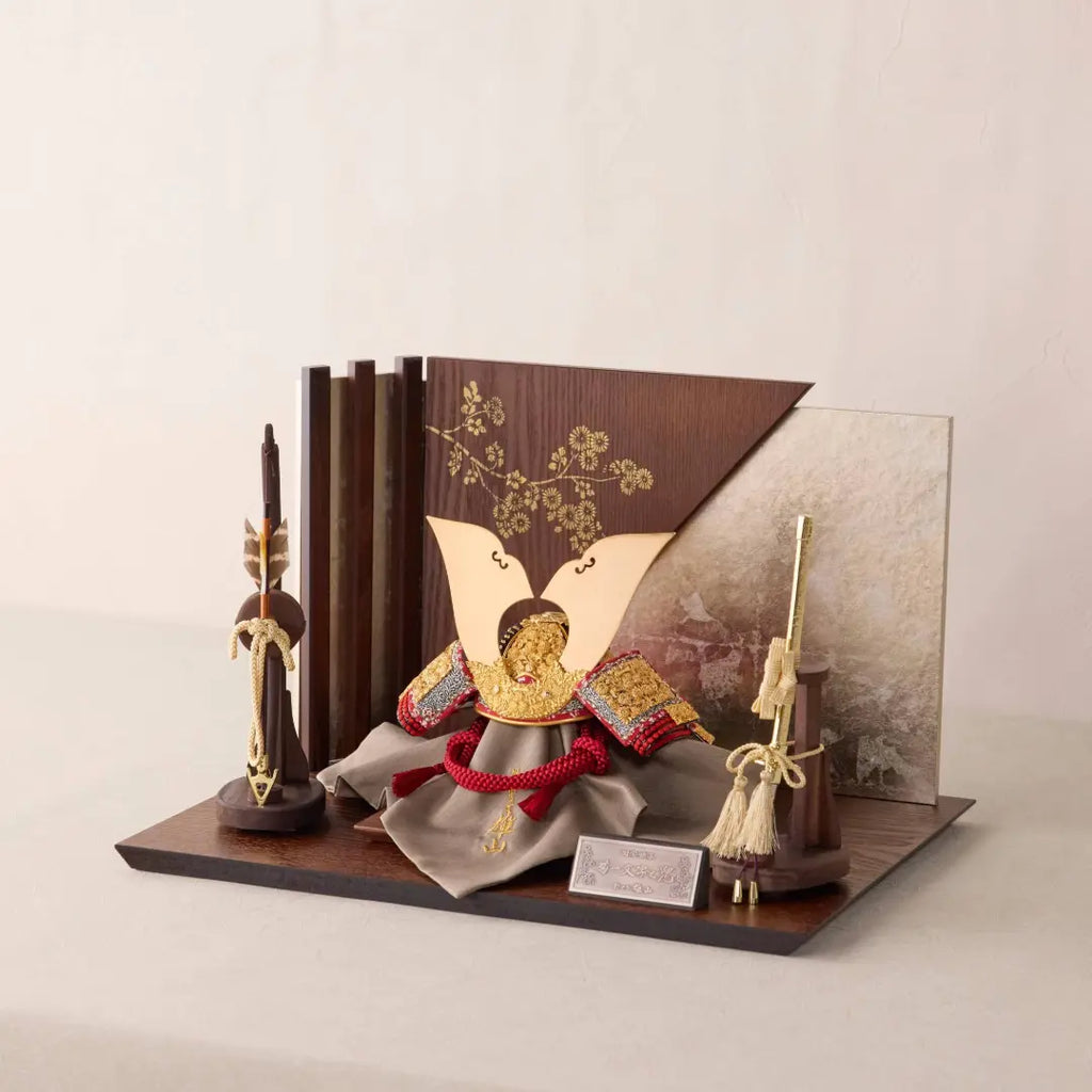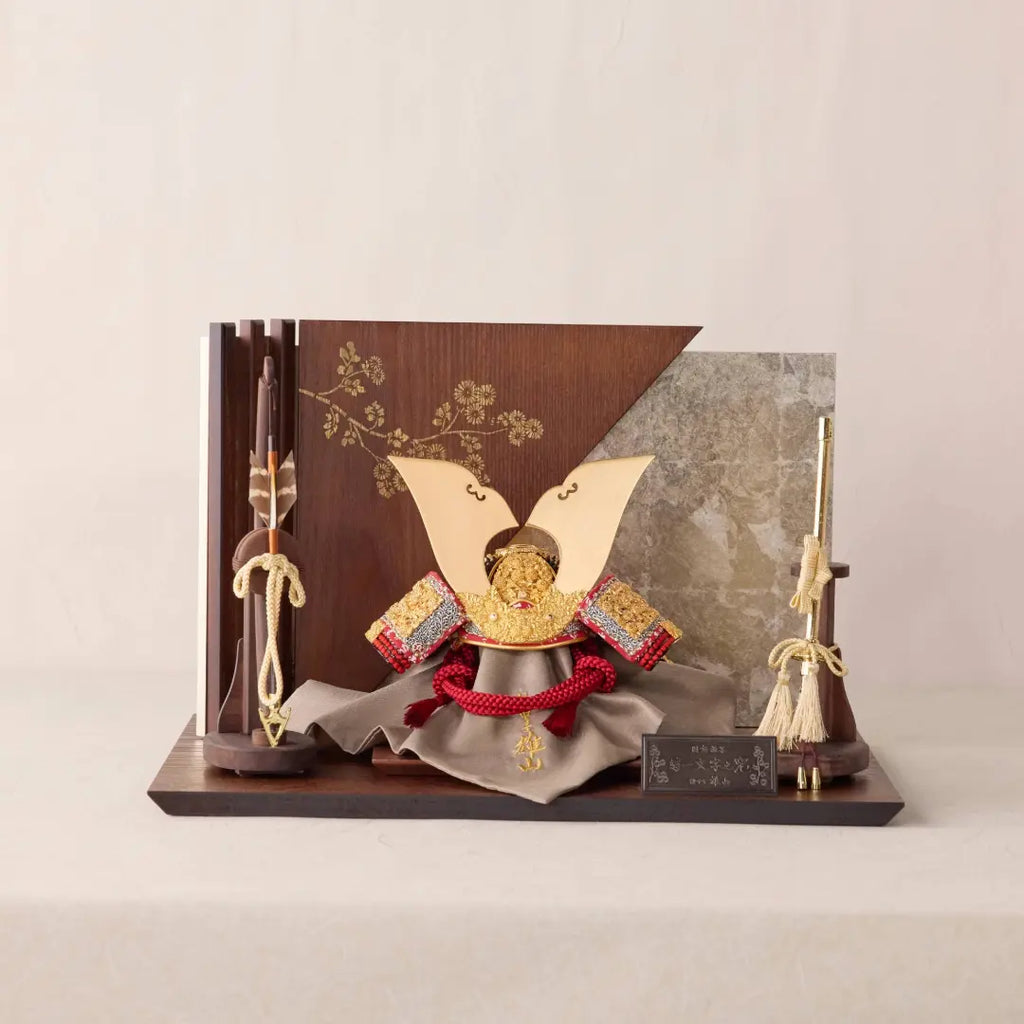漆黒の艶消し塗装を施した、シックな印象の兜飾り