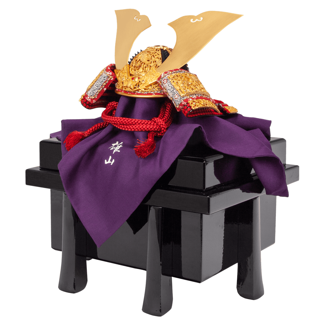 漆黒の艶消し塗装を施した、シックな印象の兜飾り