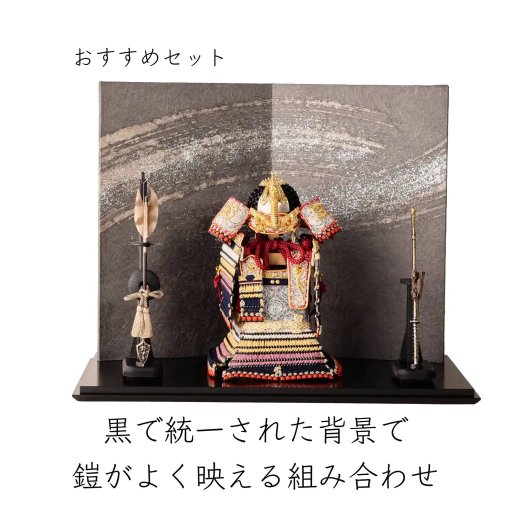 - おすすめセット:50cm巾の台座に和紙の屏風を背景にした飾り(弓太刀付)