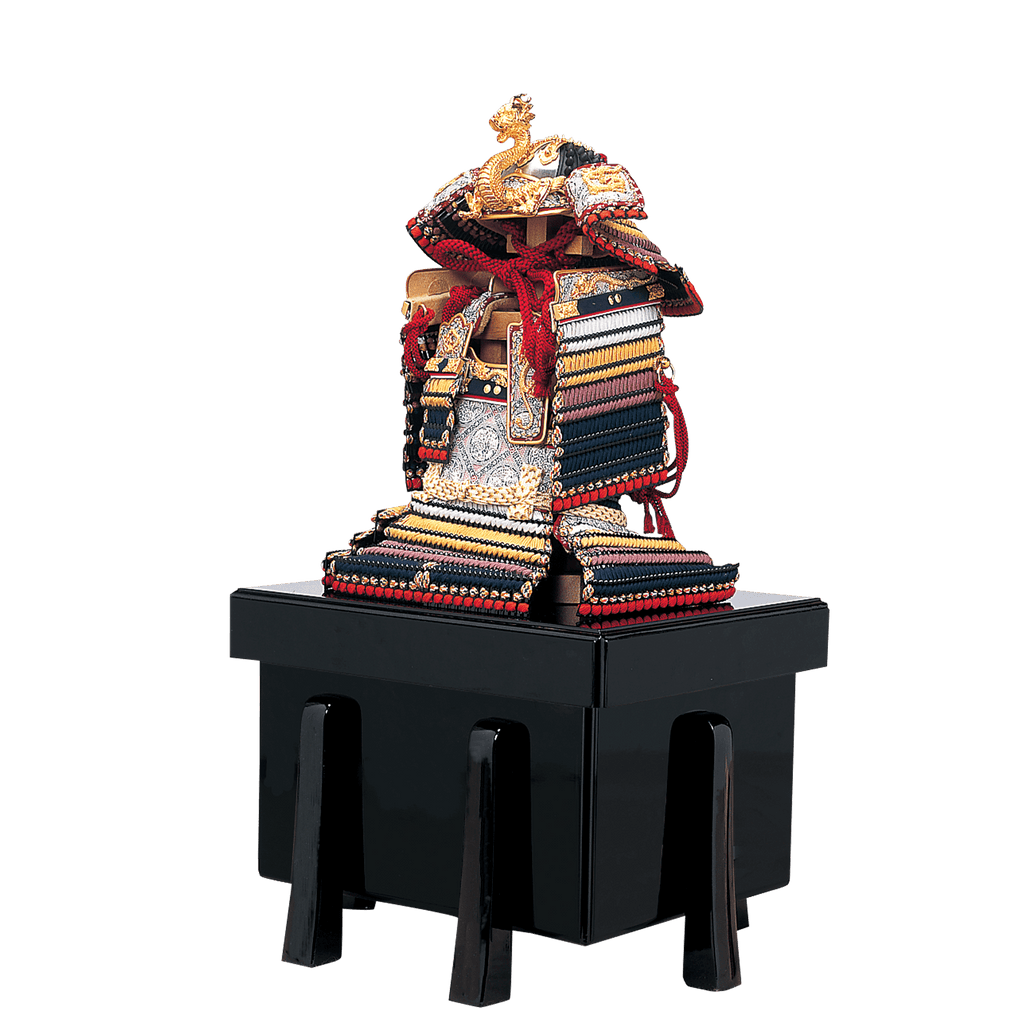 「八龍(はちりゅう)」は、『保元物語』『平治物語』に登場する、源氏に伝わる八領の伝説の鎧のひとつです。 戦乱の中で失われた鎧を、資料と時代考証をもとに鈴甲子雄山が再現しました。 八幡大菩薩の守護を受けるため、八大龍王を象った八匹の龍の飾りを全身に配した壮麗な意匠が特徴。 1/5スケールながら精緻な造形が際立つ、源氏の信仰と美意識を映す一領です。