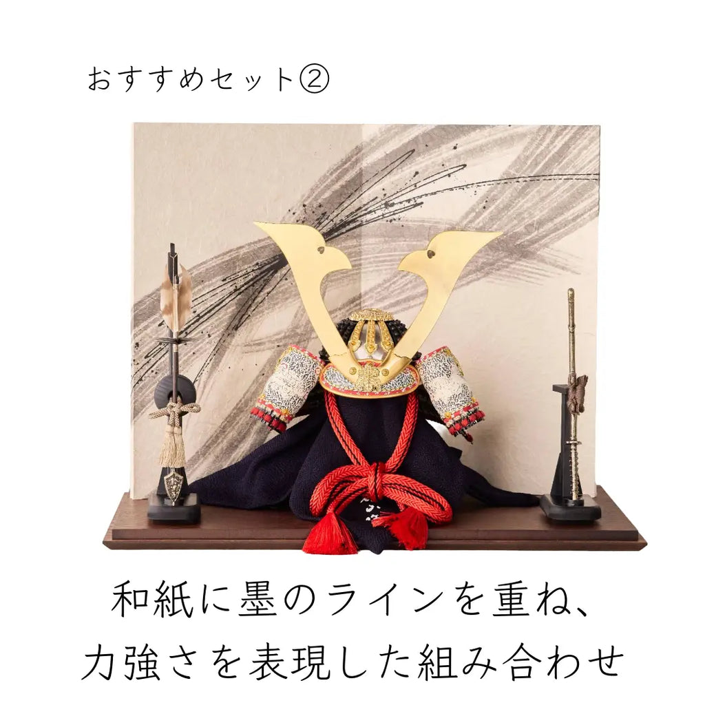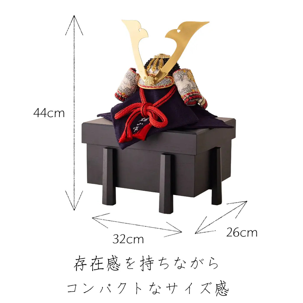 漆黒の艶消し塗装を施した、シックな印象の兜飾り