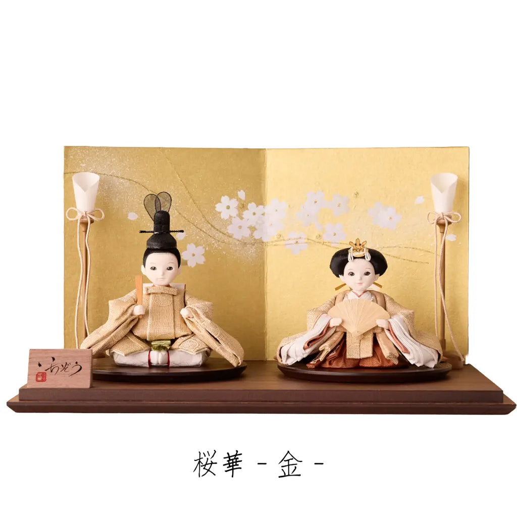 おさなげながら凛とした表情を見せる雛人形「まどか」。“木漏れ日”の輝きを表現した黄金色の衣装を纏い、陽光を受けてほんのりと光を返す様は、まるで木々の間から差し込む春の光をそのまま纏っているかのよう。一見落ち着いた色合いの中に、角度によってきらりと変化する金糸の織りが、穏やかな温かみと華やかさを添えます。