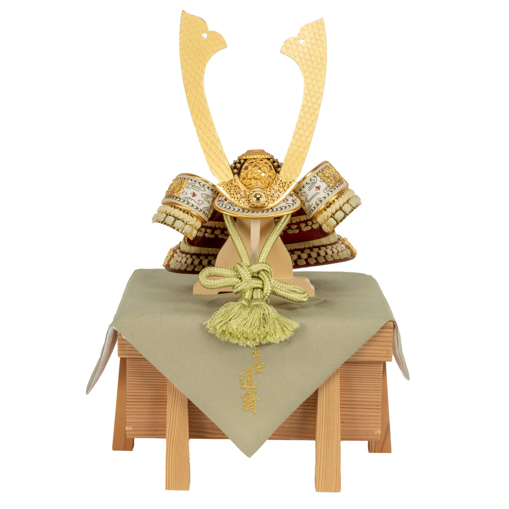 漆黒の艶消し塗装を施した、シックな印象の兜飾り