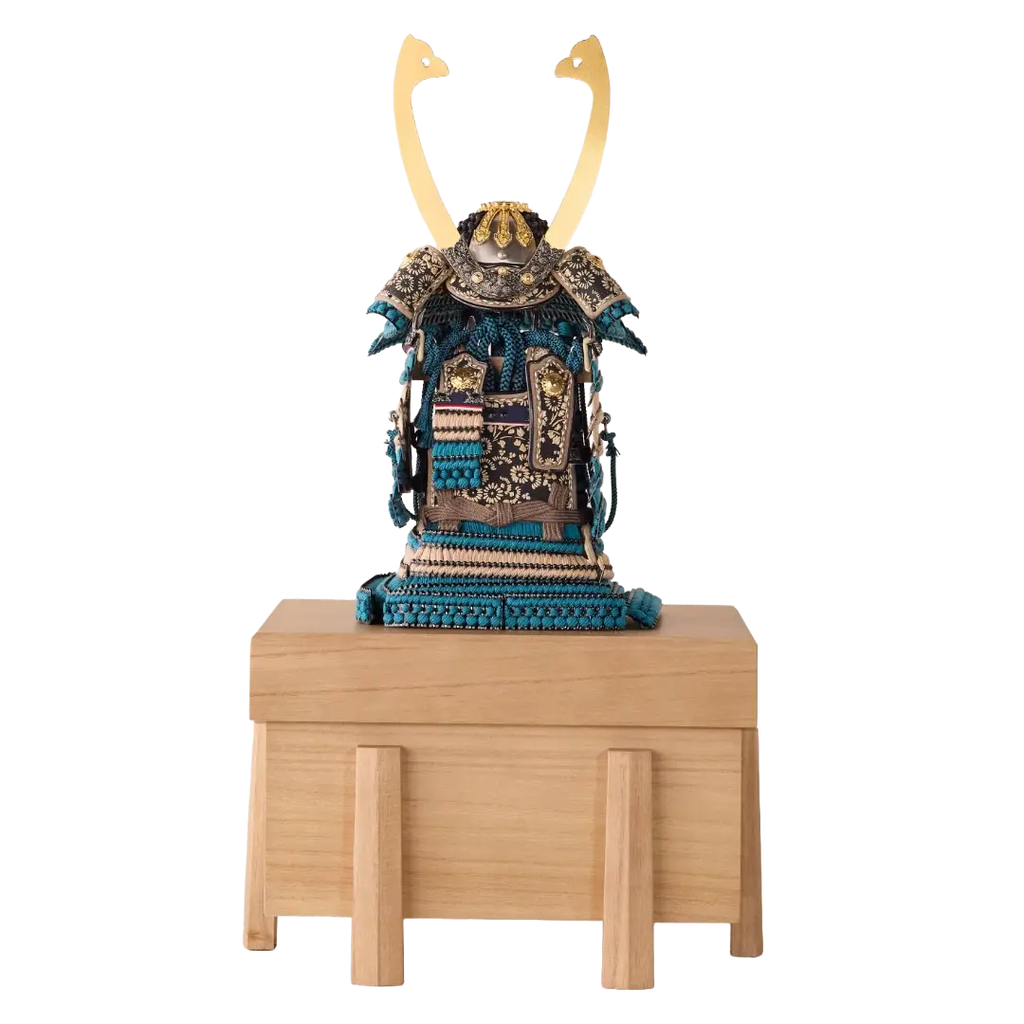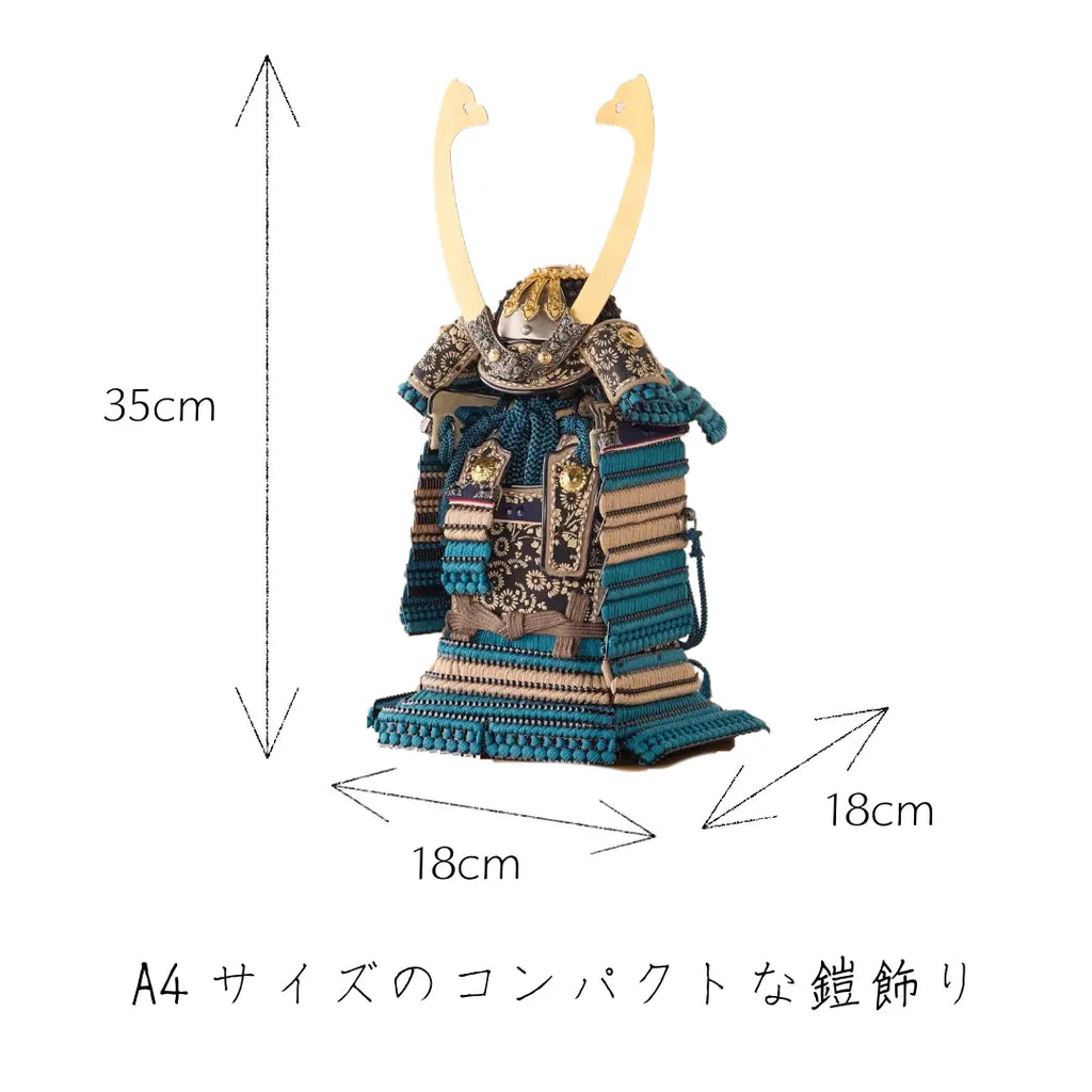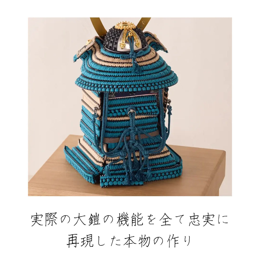 「飛鳥」は、神社への奉納や贈り物として作られた奉納鎧を原型に、鈴甲子雄山が現代の感性で再構築した作品です。 伝統を継承しながらも、洗練された縹色の糸を使い新たな美を表現。 A4サイズほどの1/5スケールながら、実際に着用可能な構造を持つ本格仕様。 小さな中に甲冑の精神と技を凝縮した、端正な鎧飾りです。