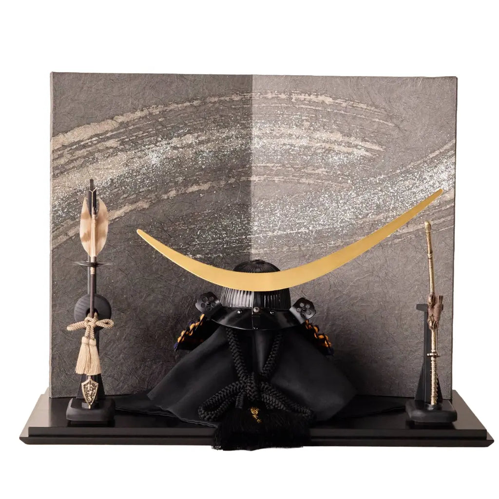 漆黒の艶消し塗装を施した、シックな印象の兜飾り