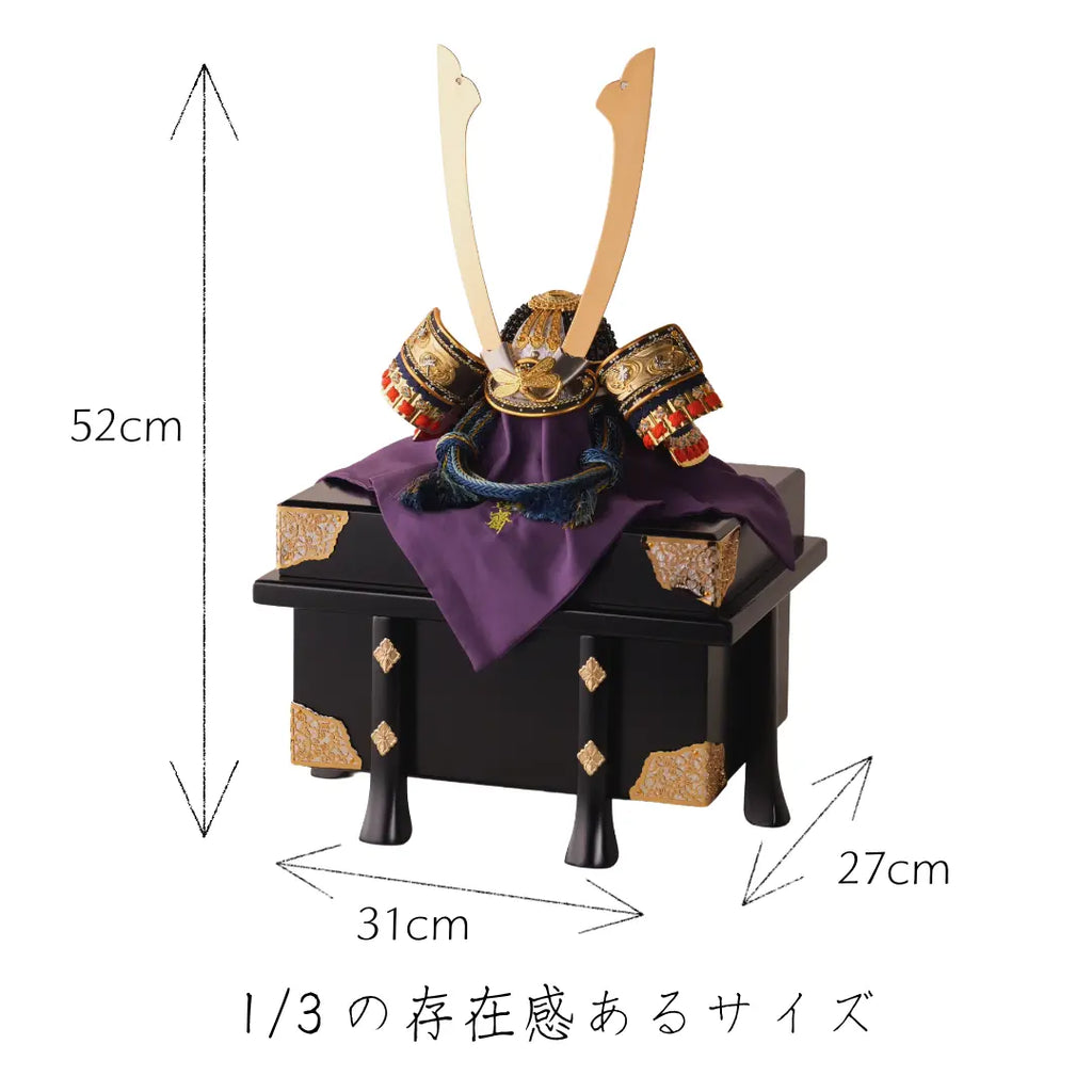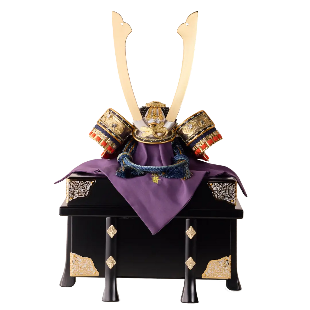 漆黒の艶消し塗装を施した、シックな印象の兜飾り