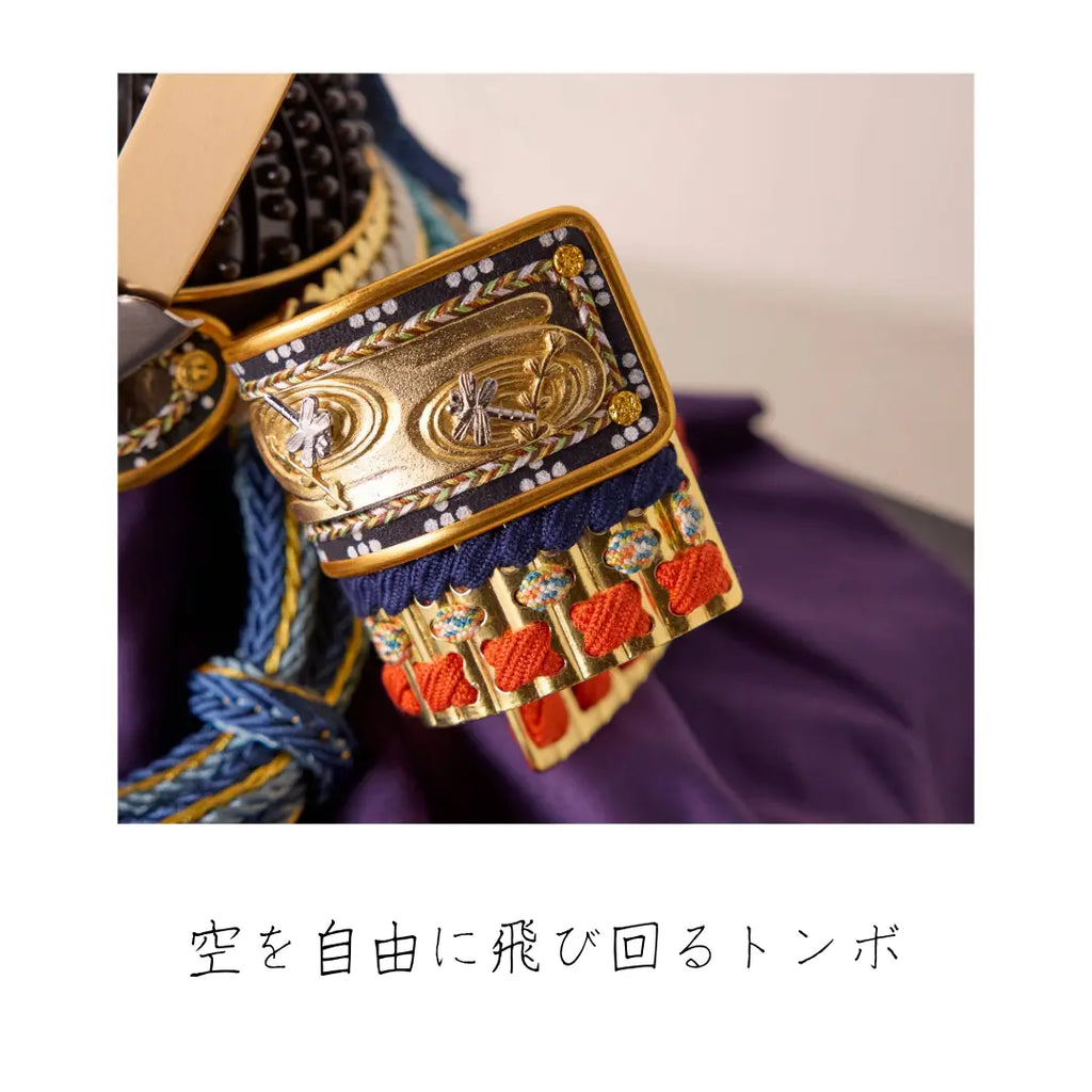 平安道齋による純金箔押しの豪華絢爛な兜飾りです。 「勝虫」は、困難に立ち向かう勇気と、乗り越える力を願って制作された兜です。 「勝虫」とはトンボを意味し、前へ進み後ろに退かないことから、勇猛果敢・不退転の象徴とされています。 勝負運や成功への道を切り開く力を授ける、縁起の良い兜飾りです。