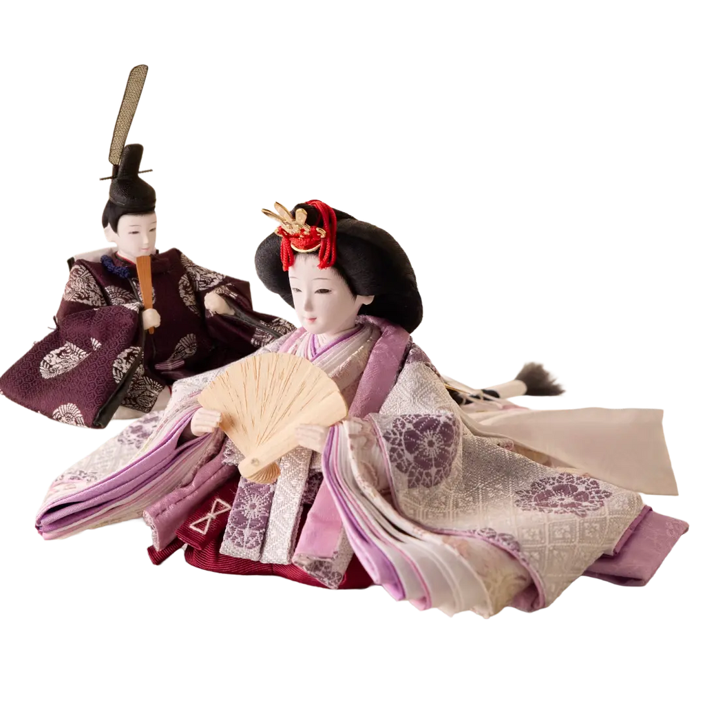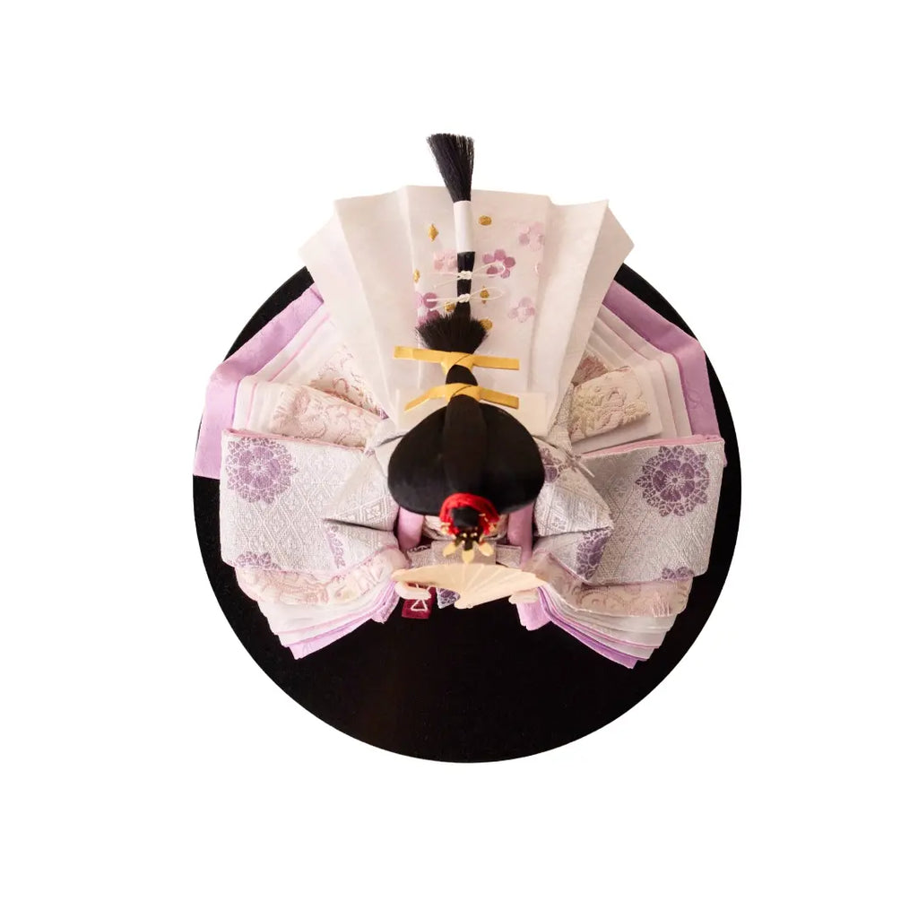 大人びた、柔らかな表情の雛人形「まどか」。やわらかな春の空気をまとうように、優雅な藤紫の衣装に身を包んだお雛様です。木々のあいだを渡る風が、藤の花を揺らしながら香りを運ぶ――その穏やかな情景を、衣の色と質感で表現しました。 光の加減でほんのりと変化する紫の重ねが、春の深まりを感じさせます。