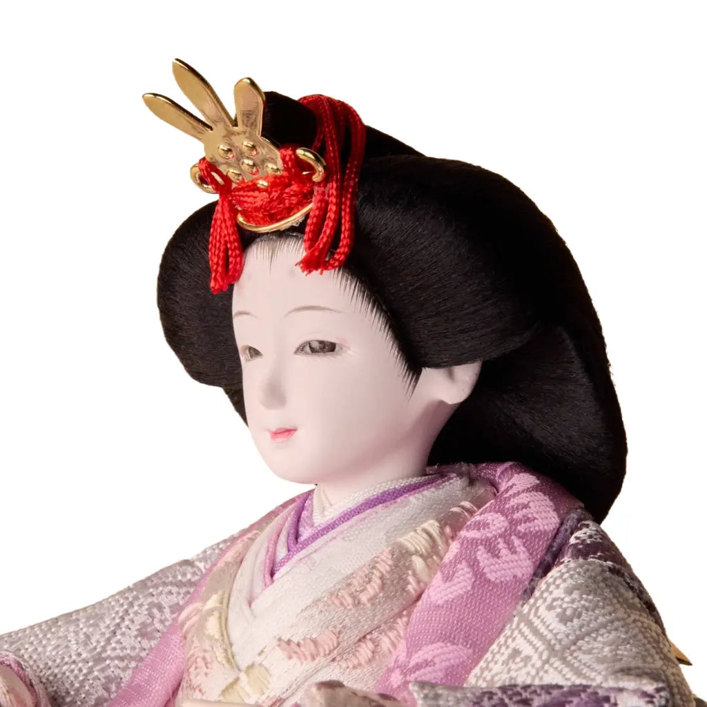 大人びた、柔らかな表情の雛人形「まどか」。やわらかな春の空気をまとうように、優雅な藤紫の衣装に身を包んだお雛様です。木々のあいだを渡る風が、藤の花を揺らしながら香りを運ぶ――その穏やかな情景を、衣の色と質感で表現しました。