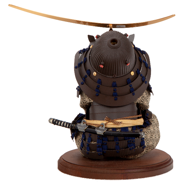 漆黒の艶消し塗装を施した、シックな印象の兜飾り