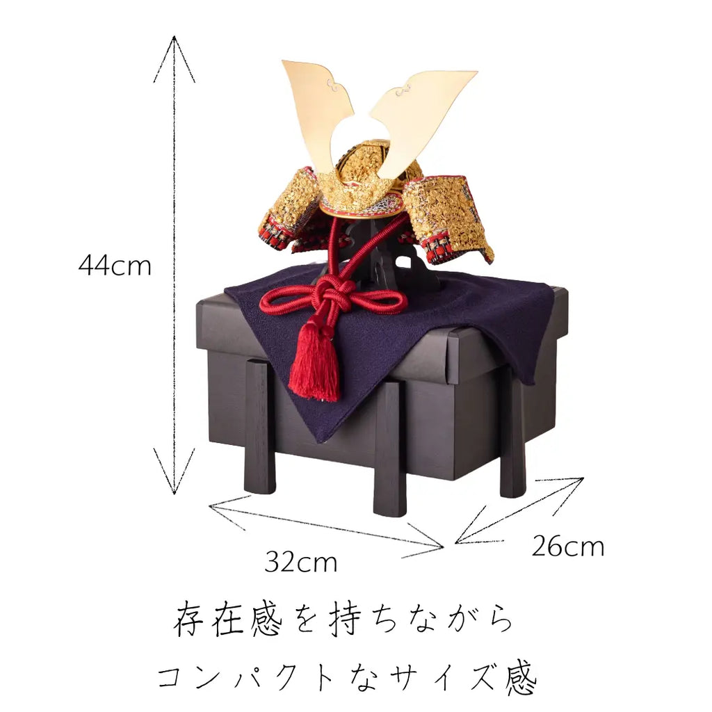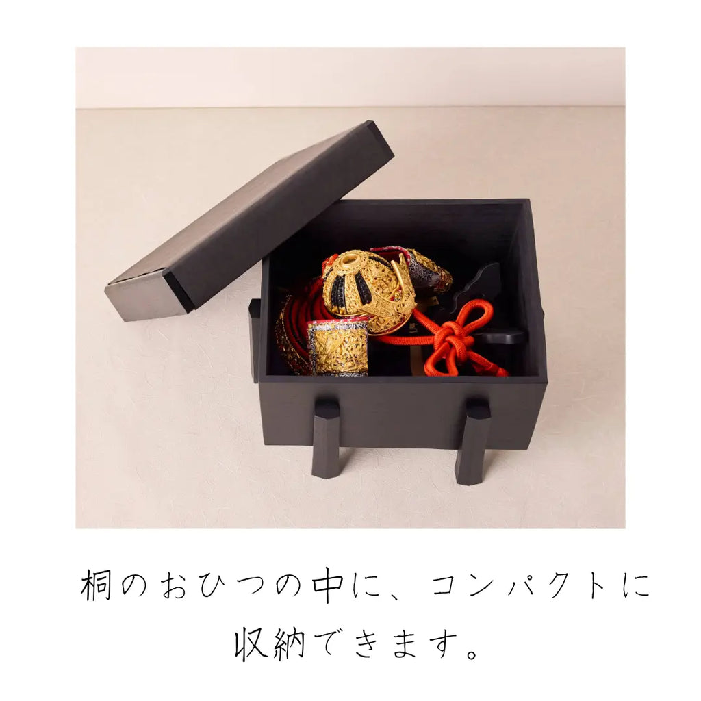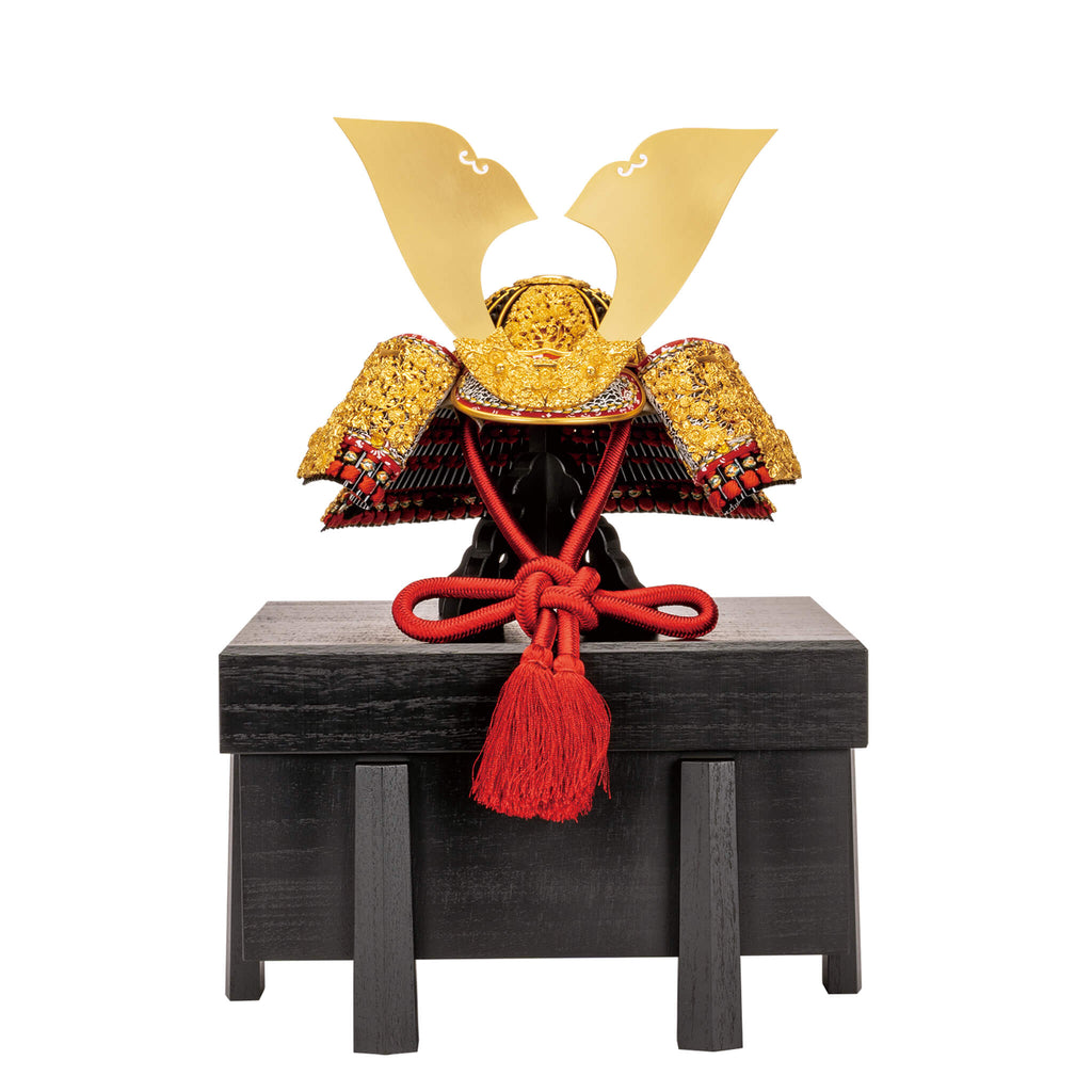 漆黒の艶消し塗装を施した、シックな印象の兜飾り