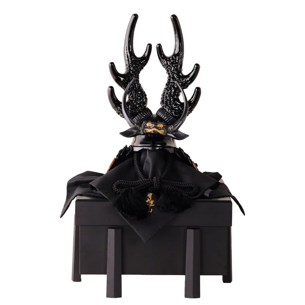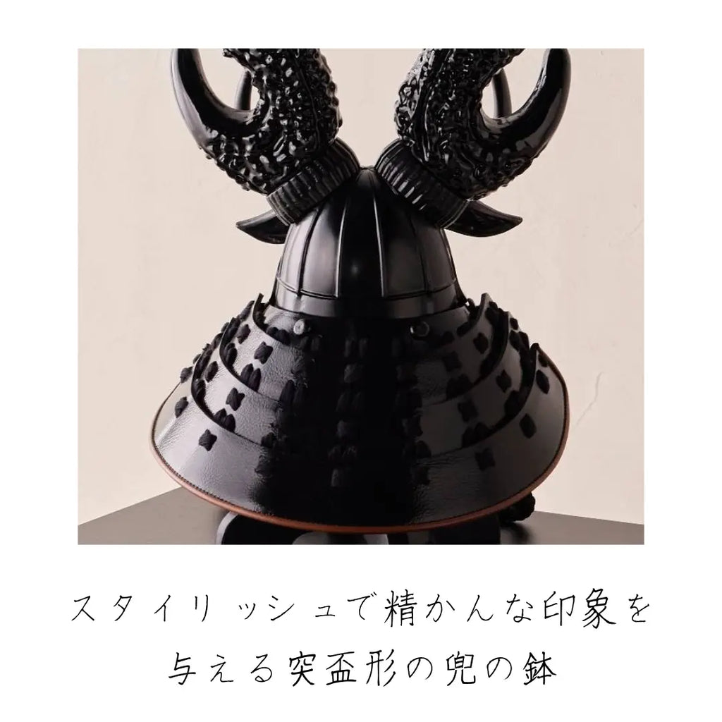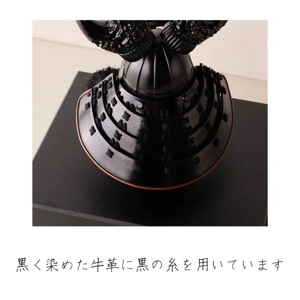 漆黒の艶消し塗装を施した、シックな印象の兜飾り
