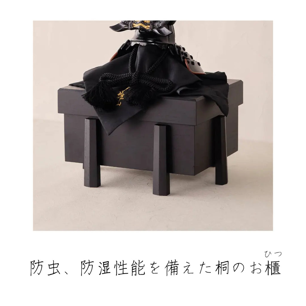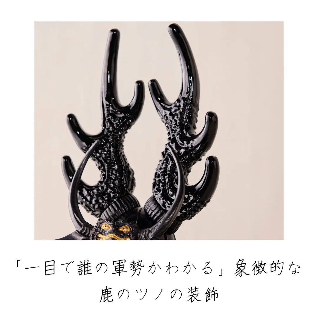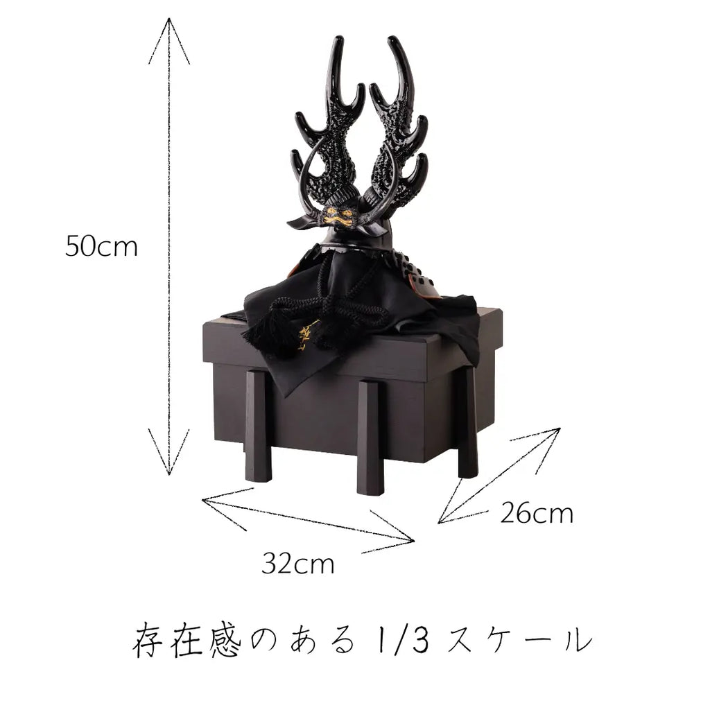 漆黒の艶消し塗装を施した、シックな印象の兜飾り