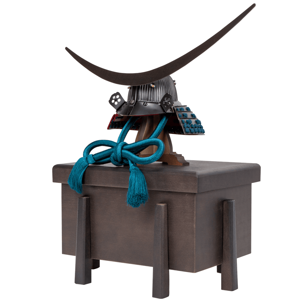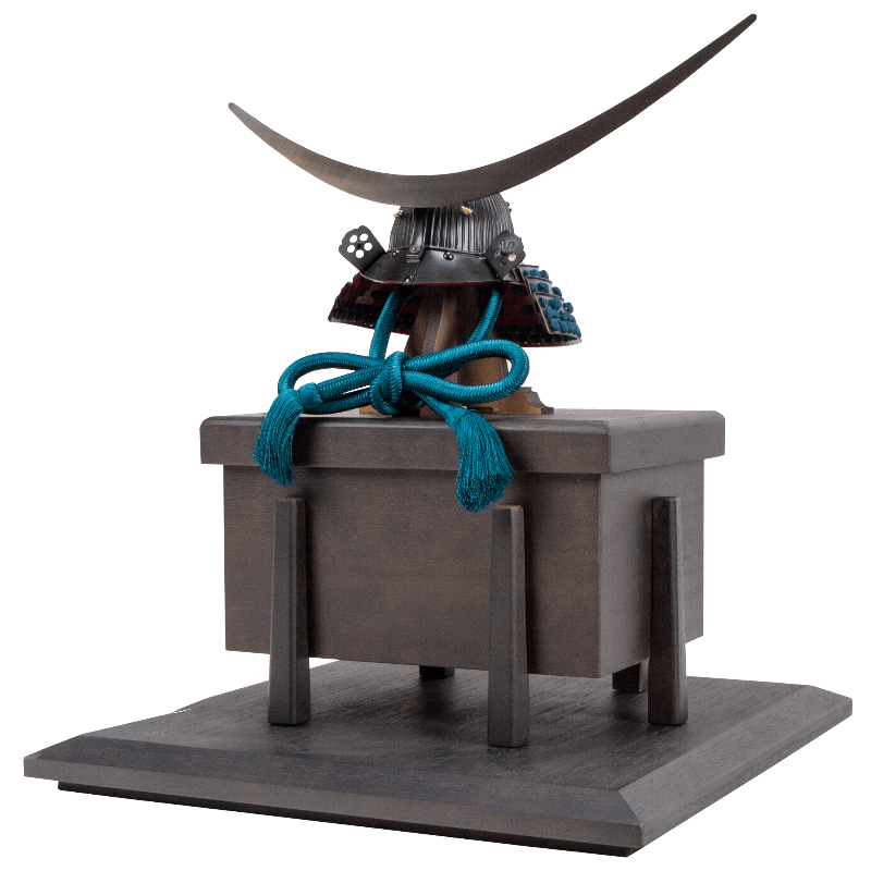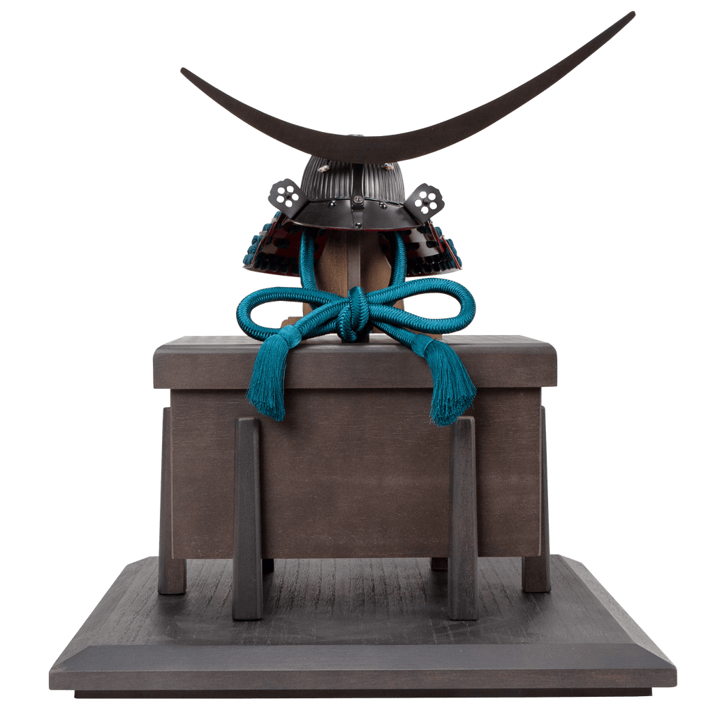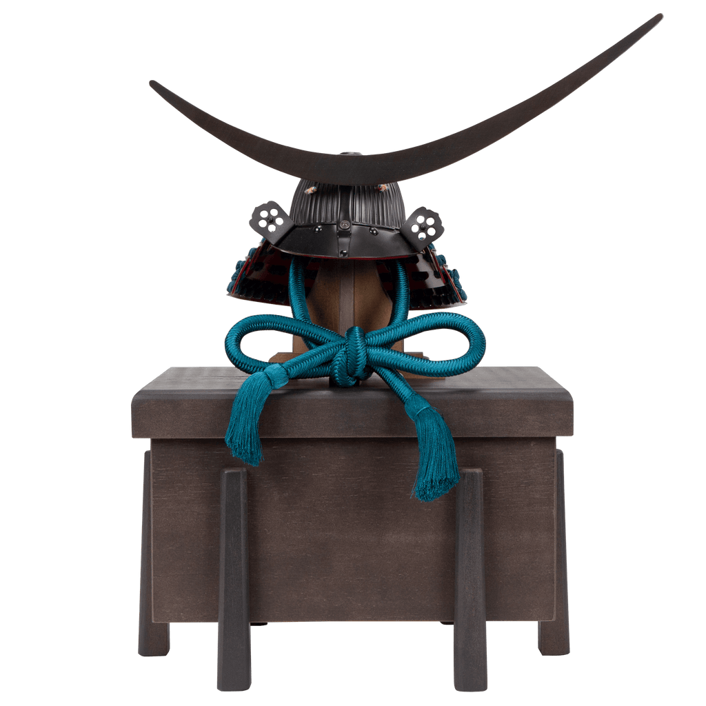 漆黒の艶消し塗装を施した、シックな印象の兜飾り