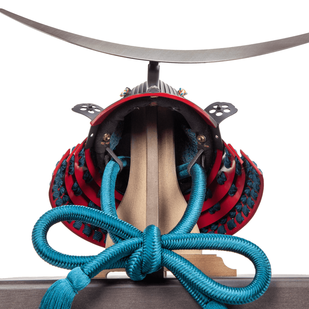 裏地には赤色を用いました。実物の甲冑でも赤を用いることが多く、戦場で血色をよく見せることと縁起担ぎの意味があったとされます。