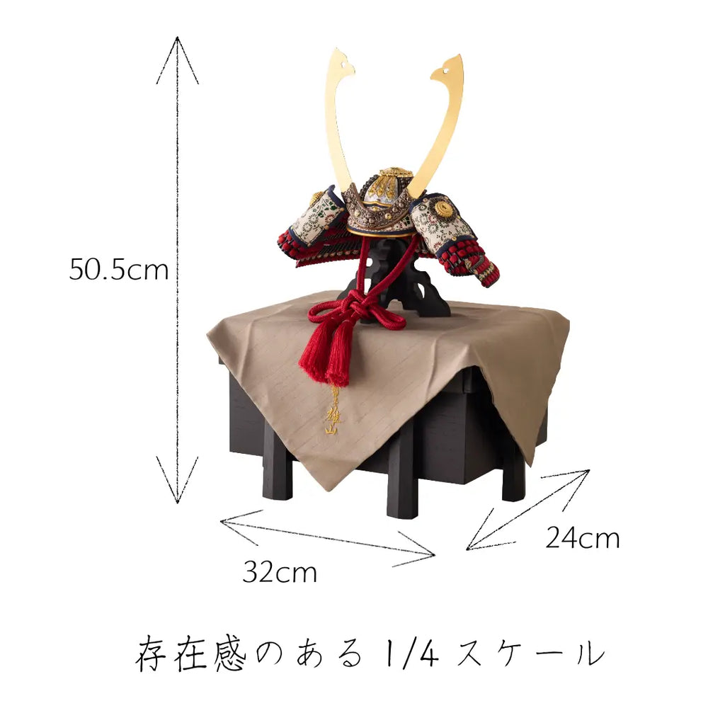 漆黒の艶消し塗装を施した、シックな印象の兜飾り